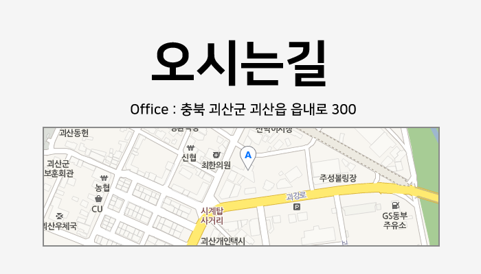주소 : (28031) 충북 괴산군 괴산읍 읍내로 300 1층